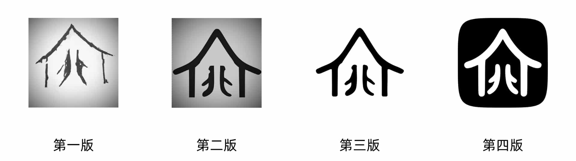 logo终于是改进到自己比较满意的状态。一开始这个形象只是初中的时候在课本上随便画的,貌似当时在讲甲骨文,画出来后发现这个还是挺有意思。简化的房子形象和两个人的形象结合就是这个抽象画的核心。后来高中接触智能机的时候,就把这个当做了头像。前三版本甚至都不对称,当然两个小人不对称是有意设计的,但是一想这么小也看不清啥,所以干脆做成全对称的,经过几次重画也算是有个正型了。